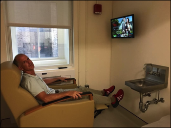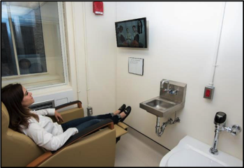 RMR/TEF WRIC interior showing how the subject relaxes during the metabolic measurement. This also shows the restroom and blood sampling port.