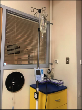 Blood sampling being conducted for a subject within the RMR/TEF WRIC. This particular set-up shows a catheter connected to the subject for blood sampling every 30-minutes during a 23-hour study.