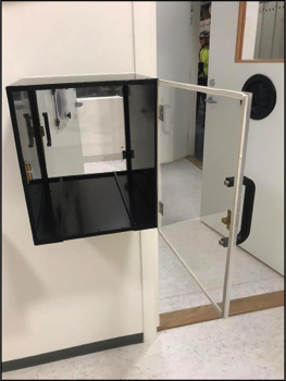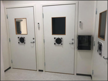 Standard entry gasketed doors to each of the three WRIC’s containing blood sampling ports. Pass through shown next to the door for the 23-hour studies WRIC. These are low cost and easy to install.