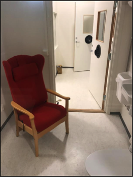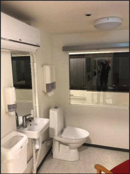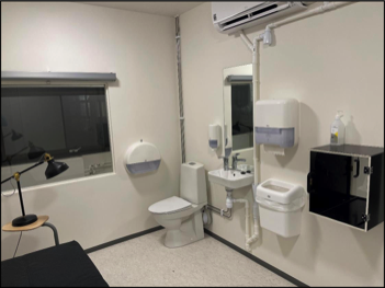 Interior of the 23-hour studies WRIC showing the restroom facilities and pass through.