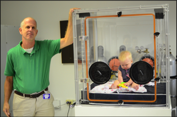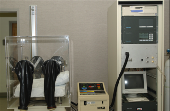 This was an earlier version of the infant WRIC, the Enhanced Metabolic Testing Activity Chamber (EMTAC), that I created in 2000. I was the first pioneer the skin-to-skin parental/care giver interaction with their infants during metabolic measurements.