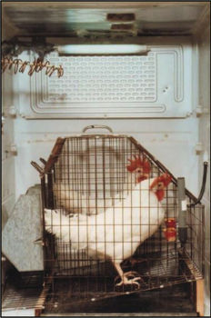 Inside of the poultry indirect calorimeter chamber. Each chamber housed two laying hens.