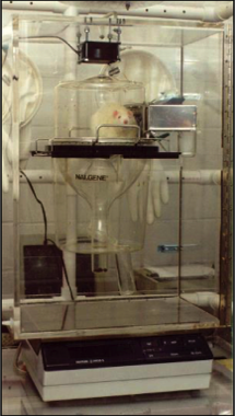 (1994): Rodent indirect calorimeter I developed at Maimonides Medical Center, Department of Pediatrics, featuring a chamber whereby a rodent metabolic cage could be inserted. The entire enclosure rests on top of a balance to measure physical activity. Utilizing the metabolic cage enabled measurement of all the components of rodent energy expenditure. Rodents up to 500 grams could be placed within the internal metabolic cage.
